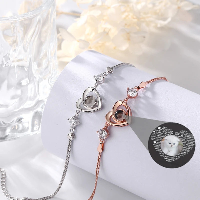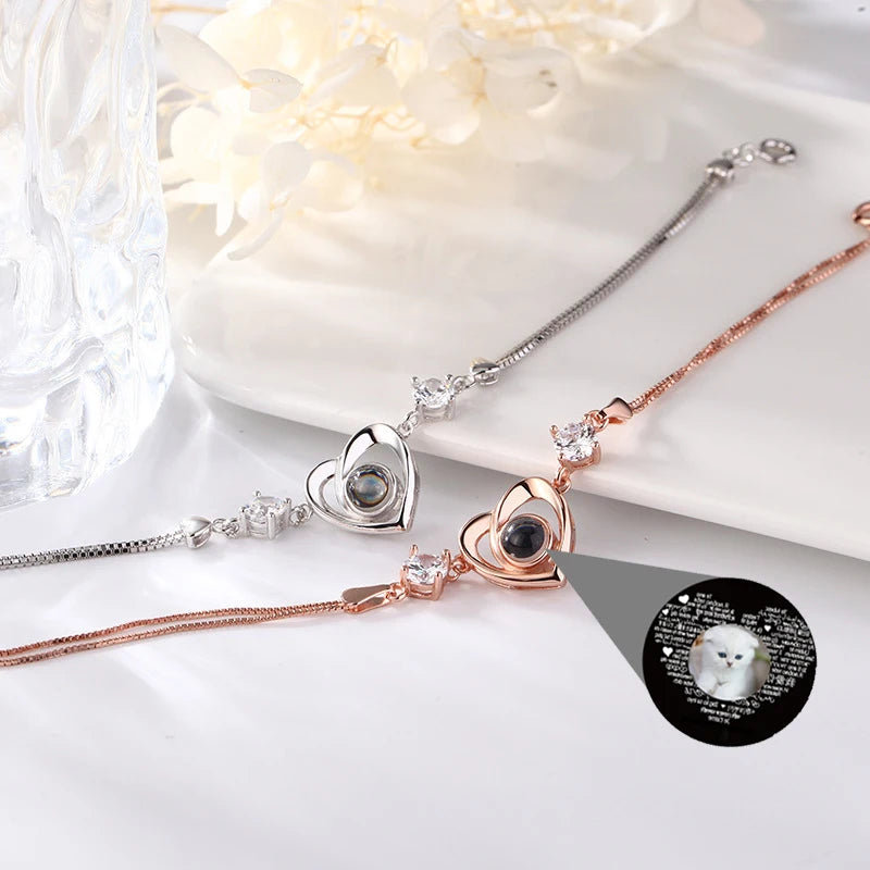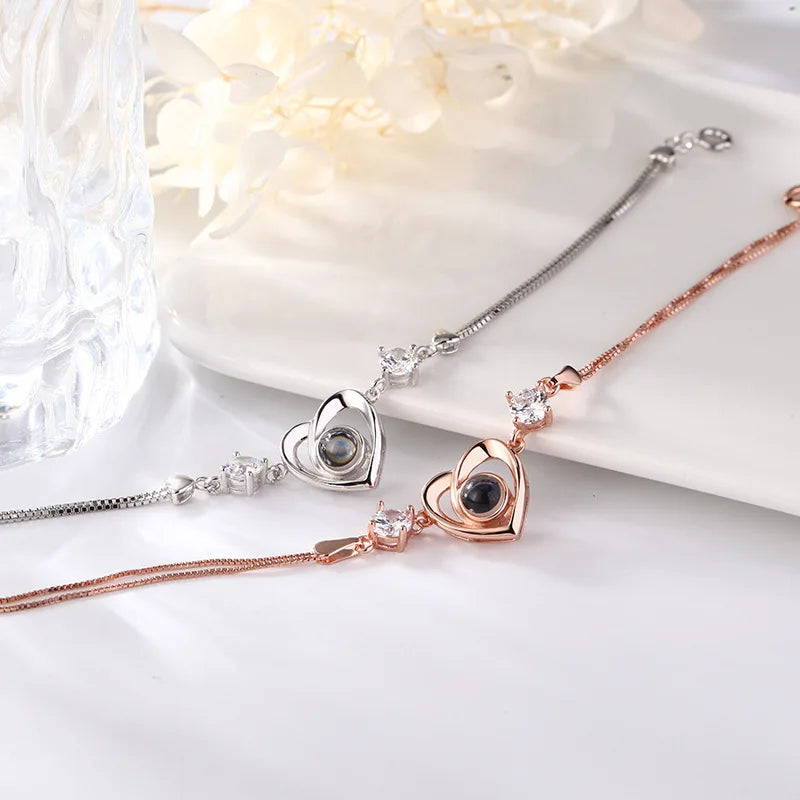 925 Silver 100 Languages I Love You Heart Projection Bracelet Custom Photo Jewelry Personalisierte Geschenke Valentines Day Gift